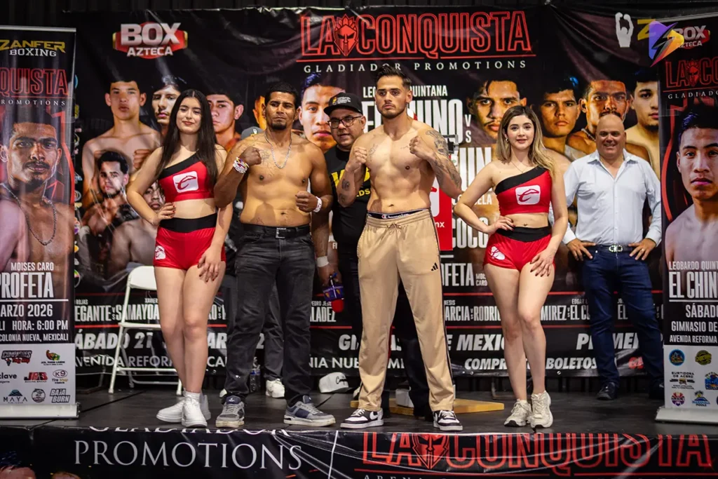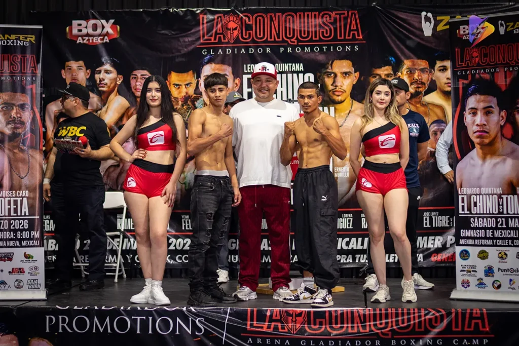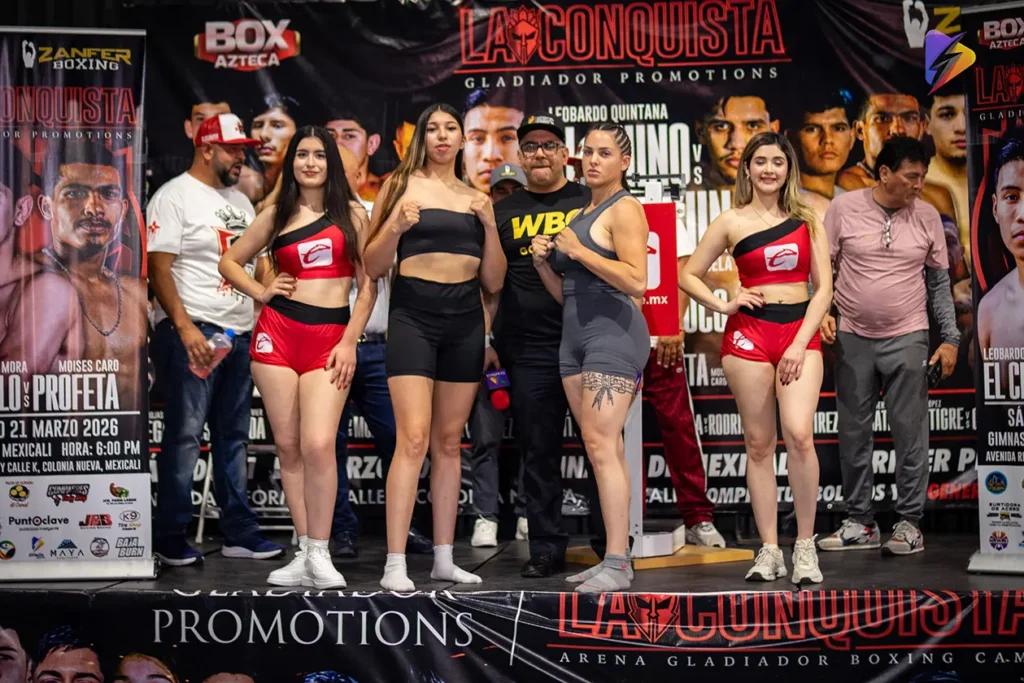 La función “La Conquista”, organizada por Gladiador Promotions en conjunto con Zanfer Boxing, quedó lista tras la ceremonia oficial de pesaje celebrada este jueves; sin embargo, la jornada estuvo marcada por una fuerte polémica que encendió el ambiente previo a la velada de este 21 de marzo en el Gimnasio de Mexicali.