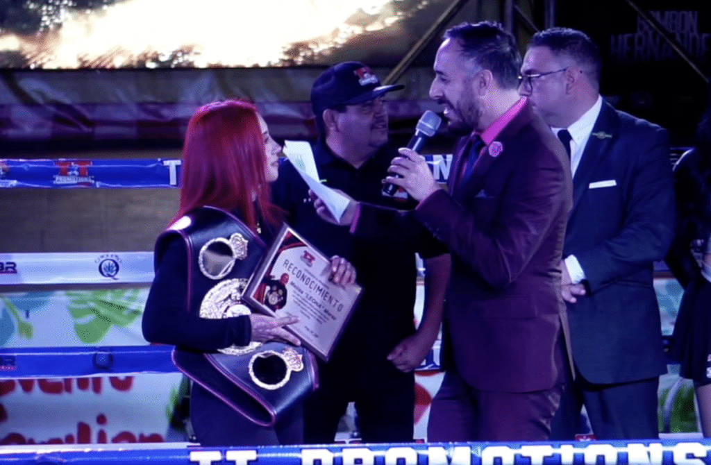 Además el evento fue engalanado con la presencia de Melisa “Leona” Meraz quien recibió un reconocimiento por parte de la empresa por la obtención del campeonato mundial interino en peso minimosca.