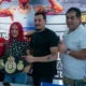 La campeona interina minimosca de la AMB Melisa “Leona” Meraz presentó su su cinturón en rueda de prensa en Mariscos El Samys.